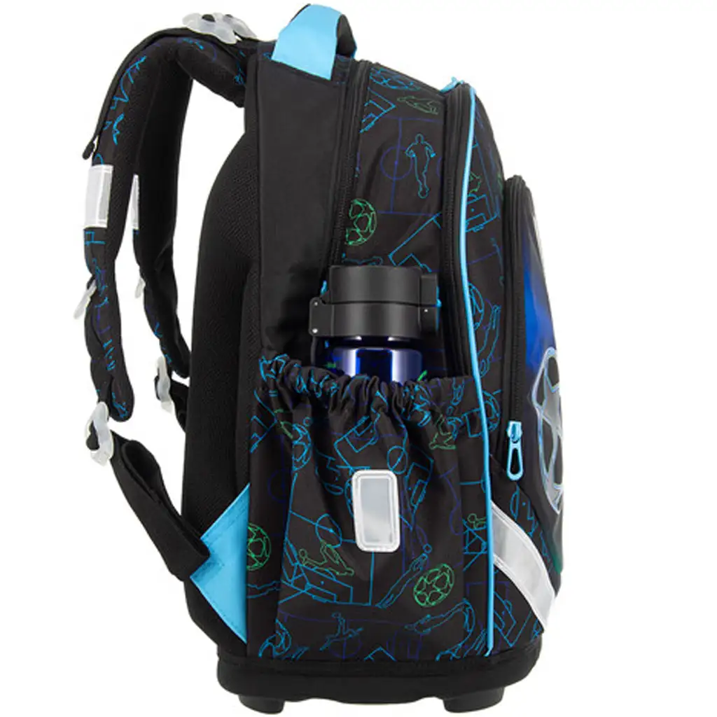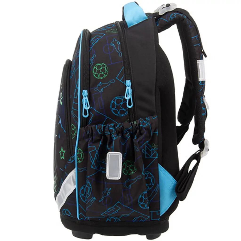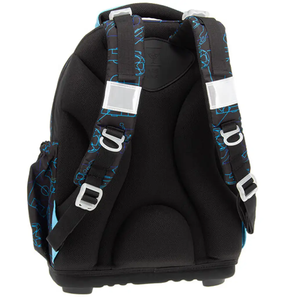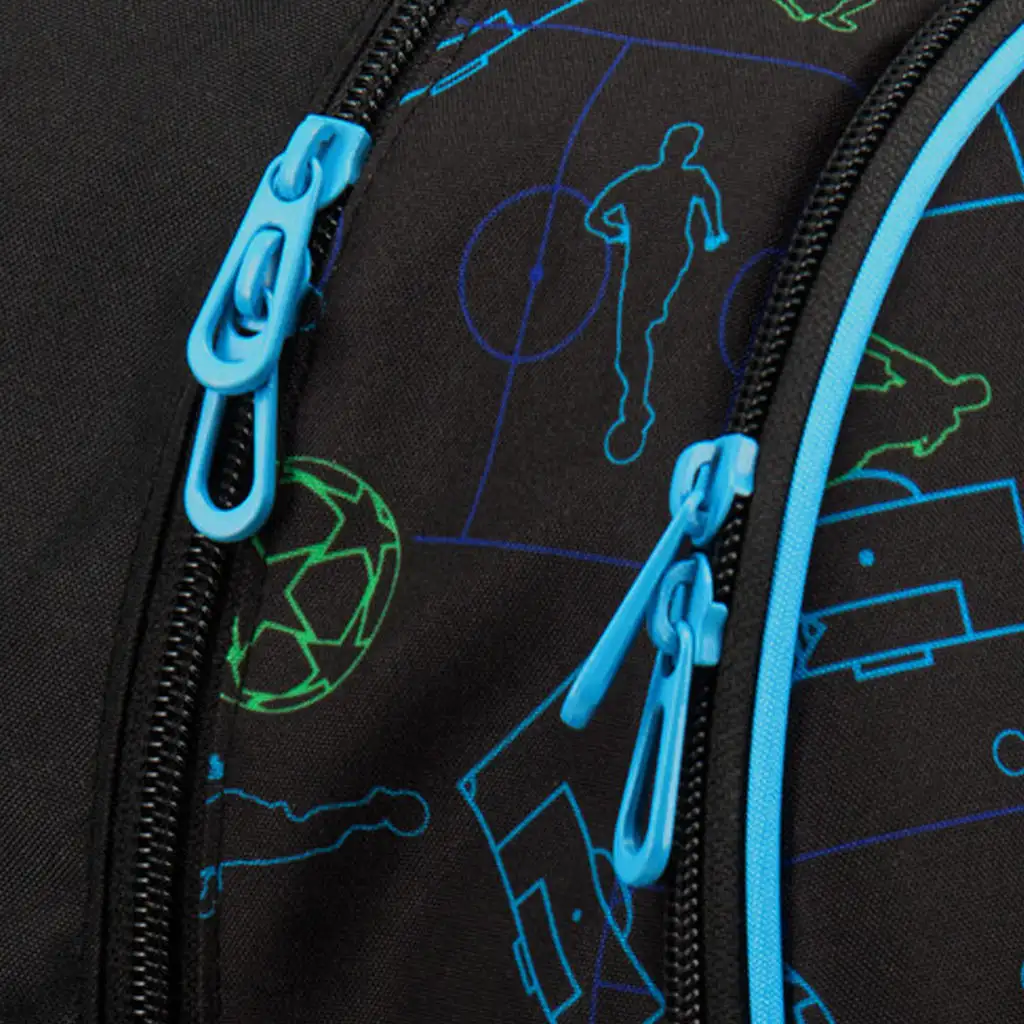 A strapabíró, erős anyagból készült táska alsó része kemény szövetből áll, amelyet négy darab stabil műanyag talp egészít ki – így a táska nem csak tartós, de jól áll meg a talajon is. Belsejében három cipzáras rekesz található, a legnagyobb rekesz textil elválasztóval segíti a rendszerezést, a legkisebbben pedig felvarrt írószertartó és igazolványtartó is helyet kapott. Két oldalzseb gumis kialakítással biztosít helyet kulacsnak vagy egyéb kisebb holmiknak. A biztonságról sem feledkeztek meg: a táskán több nagy méretű fényvisszaverő elem található, hogy gyermeked jól látható legyen a forgalomban is.