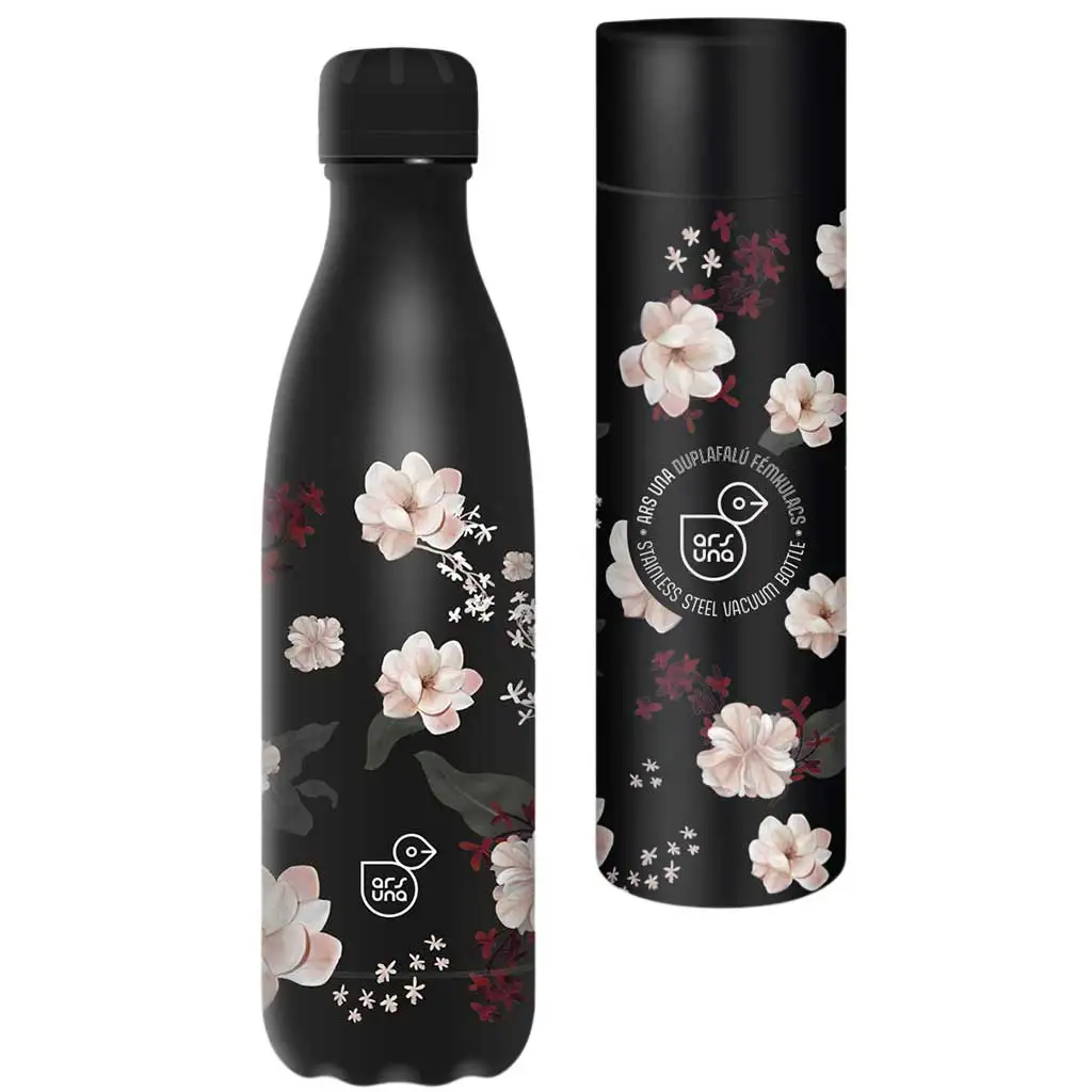 Az Ars Una Flowery Black duplafalú fém kulacs nem csak gyönyörű, hanem rendkívül praktikus is, így biztos társad lehet a mindennapokban! Ezt a 500 ml-es kulacsot elegáns fekete alapon finom virágminták díszítik, amely egyedivé és stílusossá teszi a megjelenését. A kulacs anyaga kiváló minőségű, EU szabványoknak megfelelő 304SS rozsdamentes acélból készült, így hosszú távon számíthatsz rá, legyen szó meleg vagy hideg italok tárolásáról.