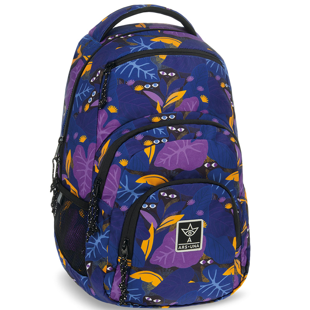 Az Ars Una Jungle Night AU-2 hátizsák remek választás, ha egy igazán különleges mintájú, mégis praktikus iskolatáskát keresel gyermekednek. A sötét alapon megjelenő dzsungel ihlette, színes levelek és apró minták modern, vagány megjelenést adnak, így gyermeked biztosan szívesen viseli majd minden nap. 4. osztálytól ajánlott, amikor már fontos a nagyobb pakolókapacitás és az átgondolt belső elrendezés.
