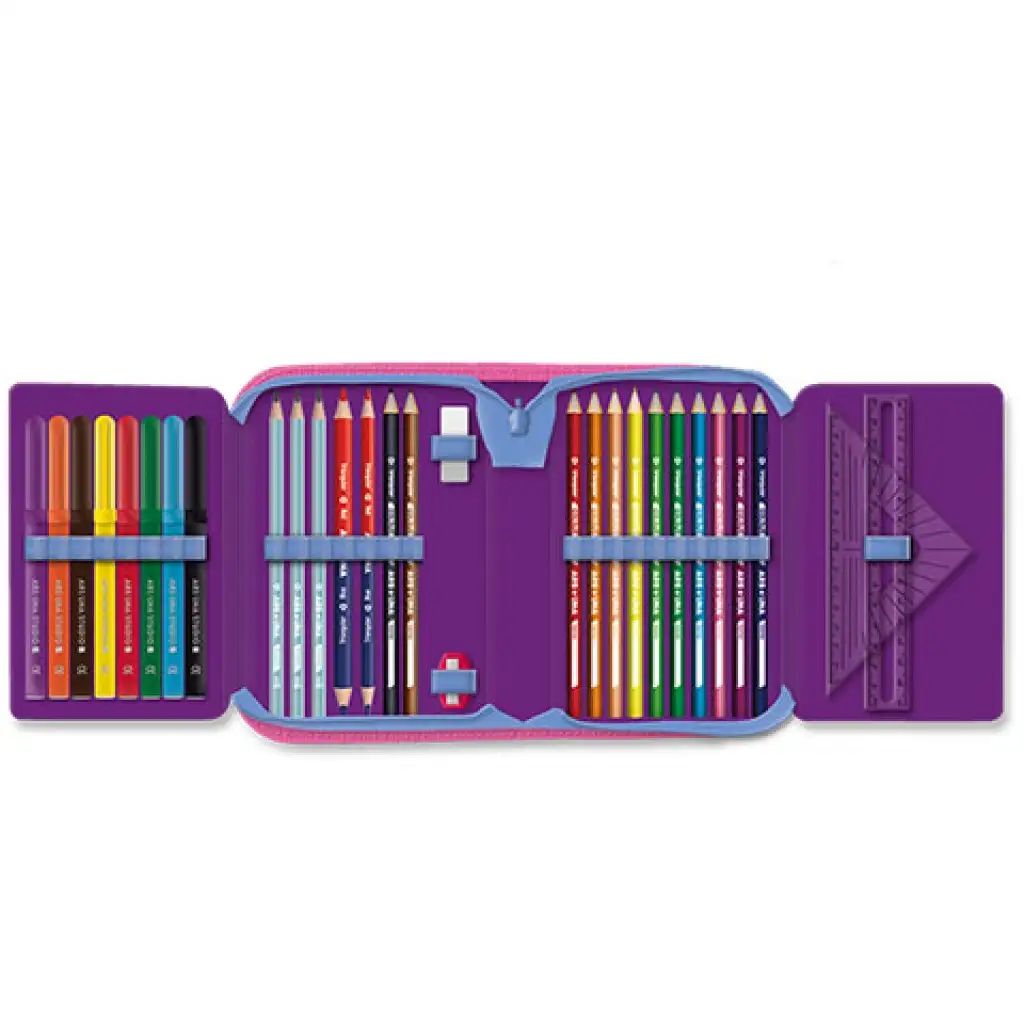 A Jungle tolltartó elülső részére ágak, falevelek és természetesen állatok lettek felrajzolva, hogy tükrözze a nevét. A panda, a majom és a többi motívum bevezet egy más világba, amely világot te lerajzolhatod a benne levő írószerek segítségével, ugyanis minden olyan elemet megtalálsz benne, amellyel rajzolni és színezni tudsz. A színesek mellett olyan hasznos dolgok sem hiányozhatnak, mint a grafit ceruzák, a radír, a vonalzó és a hegyező. A tolltartó cipzárral zárható, így biztonságosan hordozható, a benne lévő számtalan írószer, ami az iskolakezdésnek megfelelően lett összeválogatva.
