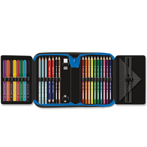 Az Ars Una: Lamborghini kihajtható töltött tolltartó 12x19x3 cm méretű, és egy minőségi tolltartó, amely kiválóan alkalmas a kreatív és írási feladatokhoz. Ez a tolltartó nem csak praktikus és funkcionális, de stílusos és elegáns designnal rendelkezik. A tolltartóban 12 db színes ceruza található, amelyek háromszögletű kialakítással rendelkeznek. Emellett 3 db HB grafit ceruza, 1 vékony és 1 vastag postairón, 8 db színes filctoll, 1 db radír, 1 db hegyező, 1 db 17 cm-es egyenes vonalzó, valamint 1 db háromszög vonalzó is megtalálható benne. Az órarend A és B hétre is helyet kapott a tolltartóban, ami rendkívül praktikus a hatékony időbeosztáshoz és tervezéshez. A tolltartó mérete 128x193x36 mm, így könnyedén hordozható és tárolható a táska vagy az iskolatáska belsejében. Ha minőségi és stílusos tolltartót keresel, amelyben minden szükséges eszköz megtalálható a kreatív tevékenységekhez, az Ars Una: Lamborghini kihajtható töltött tolltartó tökéletes választás számodra. Legyen ez az eszköztárad a kreativitásod kiemelkedő társa!