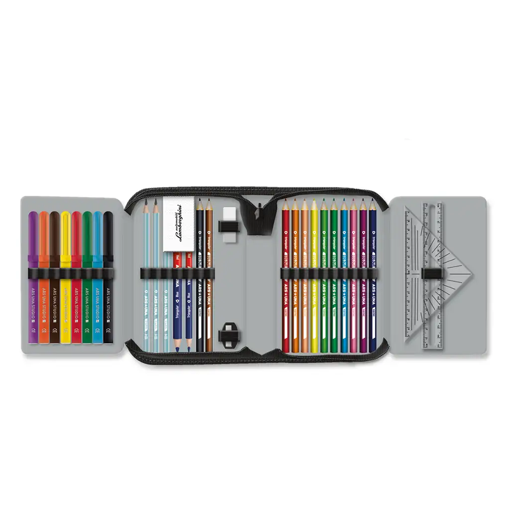 Ez a töltött tolltartó mindent magában foglal, amire egy kreatív és rendszerető gyereknek szüksége lehet az iskolában vagy otthoni tanulás során. Tartalmazza a színes ceruzákat, grafit ceruzákat, postairónokat, radírt, hegyezőt és további írószereket, hogy minden kihívásnak és feladatnak könnyedén meg tudjon felelni.