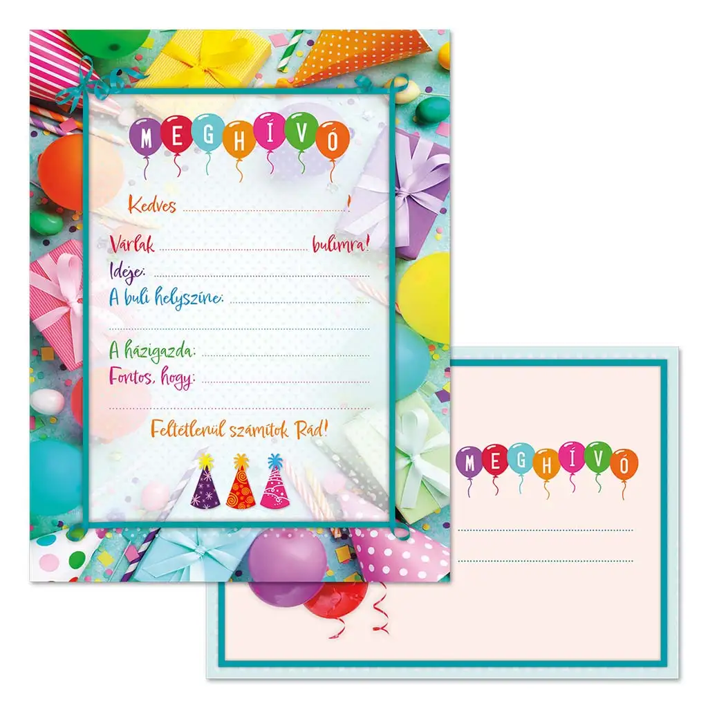 Ez a Lufis partimeghívó borítékkal – 10 db-os szett tökéletes választás, ha gyermeked születésnapi bulit szervez, és szeretnéd, hogy a meghívás is igazán különleges legyen. A vidám, színes lufis és ajándékos grafika már első pillantásra ünnepi hangulatot áraszt, a praktikus kitölthető mezők pedig segítenek abban, hogy minden fontos információ a helyére kerüljön – időpont, helyszín, házigazda és egyedi megjegyzések is ráférnek.