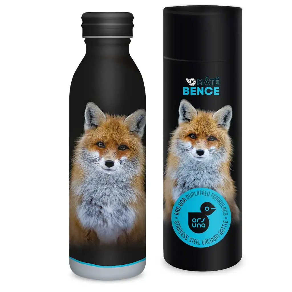 Az Ars Una Máté Bence - Róka duplafalú fém kulacs nemcsak praktikus, de egyben művészi értékű darab is, amely magával ragadja a természet szerelmeseit. Ezt a különleges kulacsot Máté Bence, a világhírű magyar természetfotós gyönyörű rókafotója díszíti, amely élénk és élethű megjelenést kölcsönöz neki. A palackot elegáns fekete alapszín és a róka lenyűgöző, részletgazdag arcképe teszi igazán egyedivé, míg a hozzá tartozó fekete díszdoboz remek ajándékválasztássá varázsolja bármilyen alkalomra.