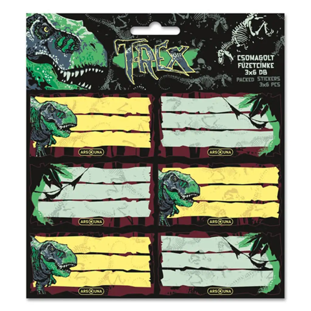 Ars Una: T-Rex csomagolt füzetcímke 3x6db-osArs Una: T-Rex csomagolt füzetcímke 3x6db-os