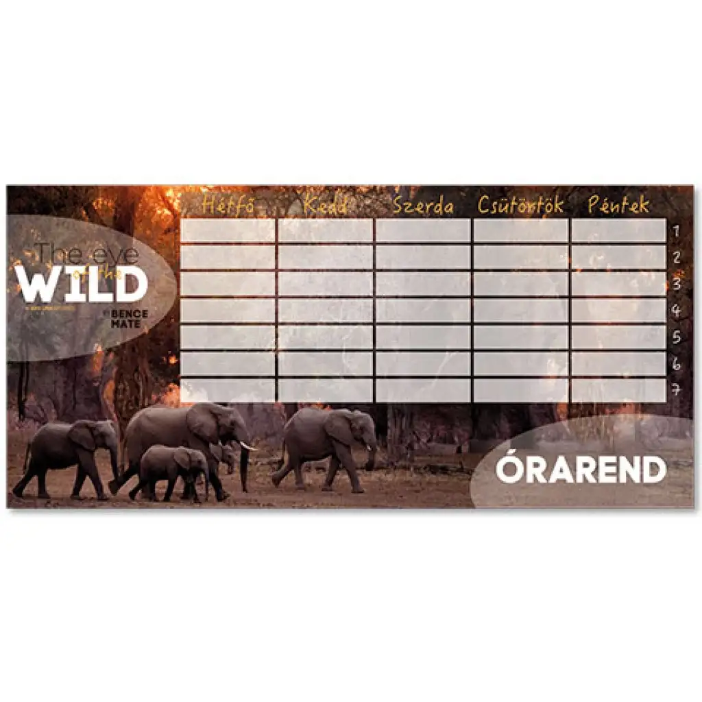 A természetfilmek mindig elvarázsolják a gyerekeket,hiszen elérhető közelségbe varázsolja a szavannák élővilágát, így ennek a elefántos órarendnek is biztos, hogy megbecsült helye leszz a tolltartóban. Az Ars Una órarend egyetlen lapból áll, de két oldalas kialakítást kapott, így A és B hetet is tudsz rajta jelölni. Az órarend magyar nyelvű, 250g-os félfényes műnyomópapírból van, melynek csodásak a színei és tollal valamint ceruzával is tudsz majd írni rá. Az órarend belefér a legtöbb tolltartóba is, hogy mindig kéznél és szem előtt legyen.