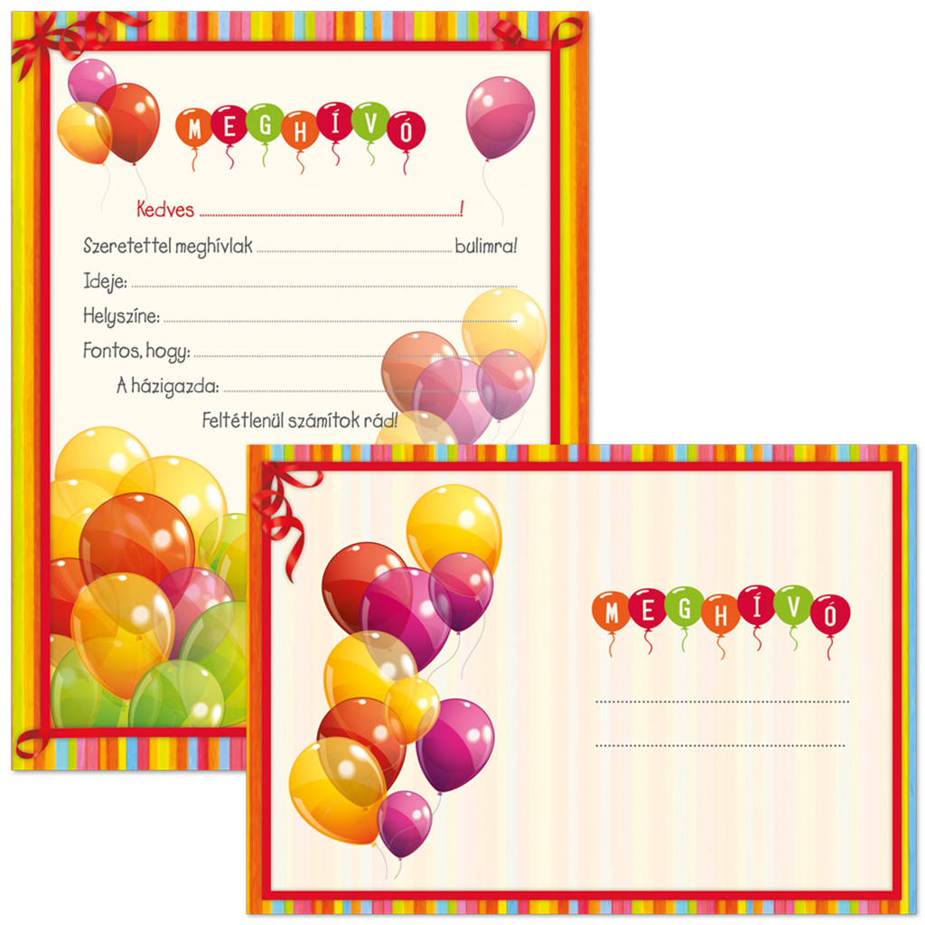 Ars Una: Vidám léggömbös 10db-os meghívó szett borítékkalArs Una: Vidám léggömbös 10db-os meghívó szett borítékkal