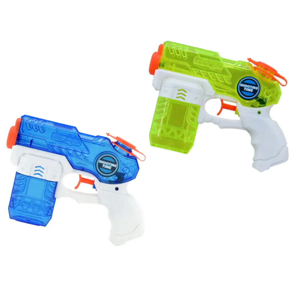 Vízicsatára fel! Ezekkel az átlátszó, tartályos vízipisztolyokkal kétféle színváltozatban az akció sosem áll meg. A kék és zöld áttetsző dizájn nem csak menő, hanem lehetővé teszi a gyerekek számára, hogy lássák, mennyi víz maradt még a tartályban. A pisztolyok kompakt méretükkel és könnyű súlyukkal ideálisak a gyors mozgású játékhoz, míg a nagy kapacitású tartály biztosítja, hogy a vízi csaták hosszú ideig tartanak. Könnyű töltésüknek köszönhetően a gyerekek gyorsan visszatérhetnek a játékhoz, hogy folytathassák a mókát. Legyen szó a kertben, a strandon történő pancsolásról vagy a barátokkal vívott barátságos párbajokról, ezek a vízipisztolyok kiváló választások a nyári szórakozáshoz.