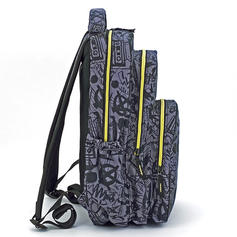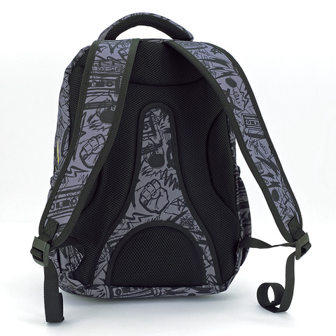 Ez a hátizsák ideális választás egy iskolába járó kamasz számára, hiszen a rendkívül tágas beltérrel kényelmes kialakítás párosul. Ezek a hátizsákok rendkívül jól rendszerezhetőek, hiszen a tetején nyíló három rekesz közül a legnagyobb egy külön párnázott tépőzáras kialakítást is rejt a laptop számára. Ehhez még két további zsebet is találunk a táska első részén kialakítva, amelyek tökéletesen megfelelnek a kisebb tárgyak, írószerek és igazolványok tárolására. A táska két oldalán egy gumis zsebet is találunk, amelybe a kollekcióhoz tartozó kulacs illeszkedik.