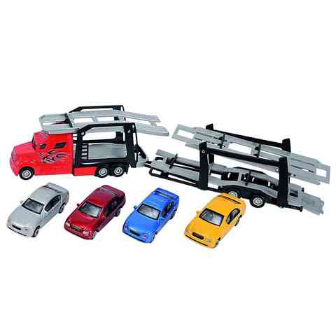 Az autószállítók még a kamionok között is különleges járgányoknak számítanak, ráadásul ebben a csomagban a gyönyörű kialakítású kamionon túl négy személyautót is találunk, így a vontatmányra fel is rámolhatjuk a rakományt, és máris kész a legszuperebb autószállító. Két különféle kamion közül kell választanunk, az egyik egy klasszikus kék színű modell, a másik, a piros egy úgynevezett csőrös járgány. A Simba Toys járművei a gyönyörű és kiemelkedően részletgazdag kidolgozásának köszönhetően teljes mértékben úgy néznek ki mint a valódi járművek.