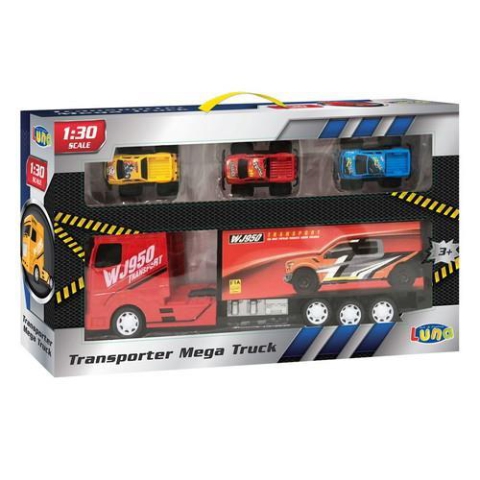 Kicsiknek és nagyoknak egyaránt remek választás ez a fantasztikus dobozos autószállító kamion, mely a megszólalásig hasonlít a hatalmas, tengerentúli csőrös kamionokra. A kamion oldalán egy vagány autós matrica látható és a szett 3db sportkocsit is tartalmaz, melyek beletehetőek a kamionba, hogy még szórakoztatóbb legyen majd a játék. A kamion méretaránya 1/30, ami megközelítőleg 40cm-es hosszt jelent. A részletgazdag kidolgozásnak köszönhetően az a szett biztosan elnyeri majd a gyerekek tetszését.
