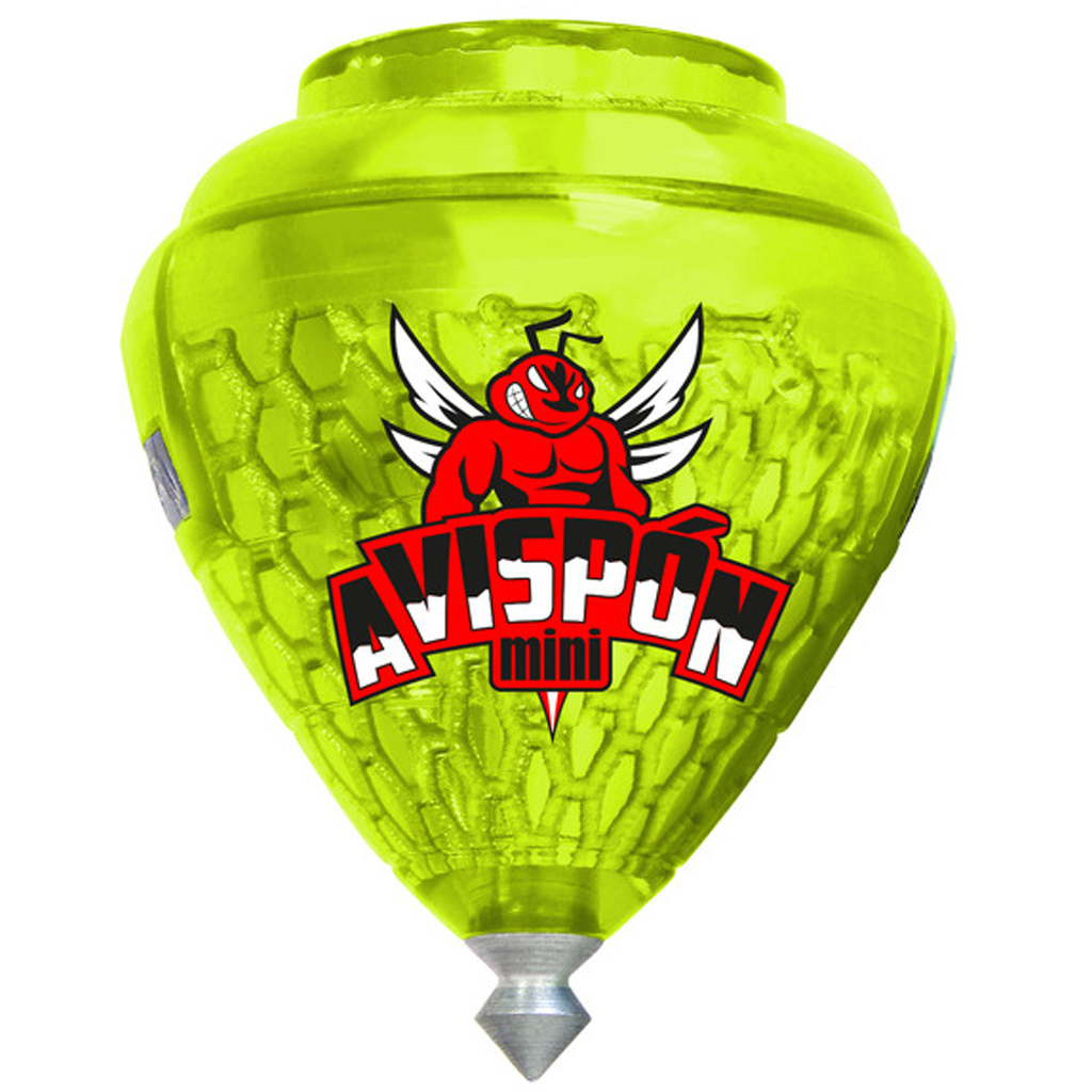 A Mini Avispón Peonza egy strapabíró, műanyagból és fémből készült pörgettyű, amely mérete miatt kisebb kezekhez is ideális. A formája segíti a stabil pörgést, a hegyes fémcsúcs pedig biztosítja a hosszan tartó forgást bármilyen sima felületen. A különleges, áttetsző műanyag ház, a darázsmotívum és az élénk színek (kék, piros, zöld, lila, átlátszó, sárga, rózsaszín stb.) még menőbbé teszik a játékot – válaszd ki a kedvencet, vagy gyűjtsd össze mindet!