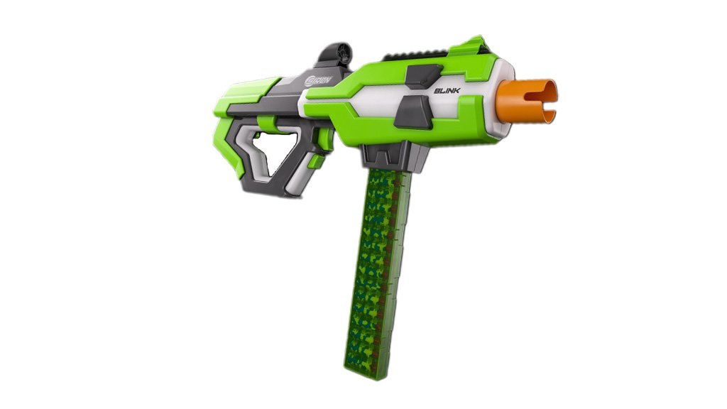 A sorozat utolsó blastere, amelyet Blink Motorized Rapid-Fire Mag-Fed Blaster néven ismerünk, akár 190 láb és 200 fps távolságra is képes lőni. Állítható tüzelési sebességekkel és ütemekkel rendelkezik, lehetővé téve az egyes lövéseket, sorozatlövéseket vagy teljesen automatikus használatot. A 20 lövedékes tár segítségével a játékmenet bármilyen stílusra átváltható, amely a legjobban megfelel neked!