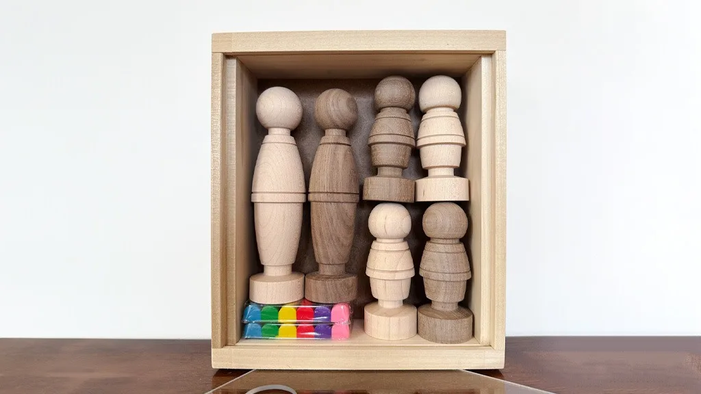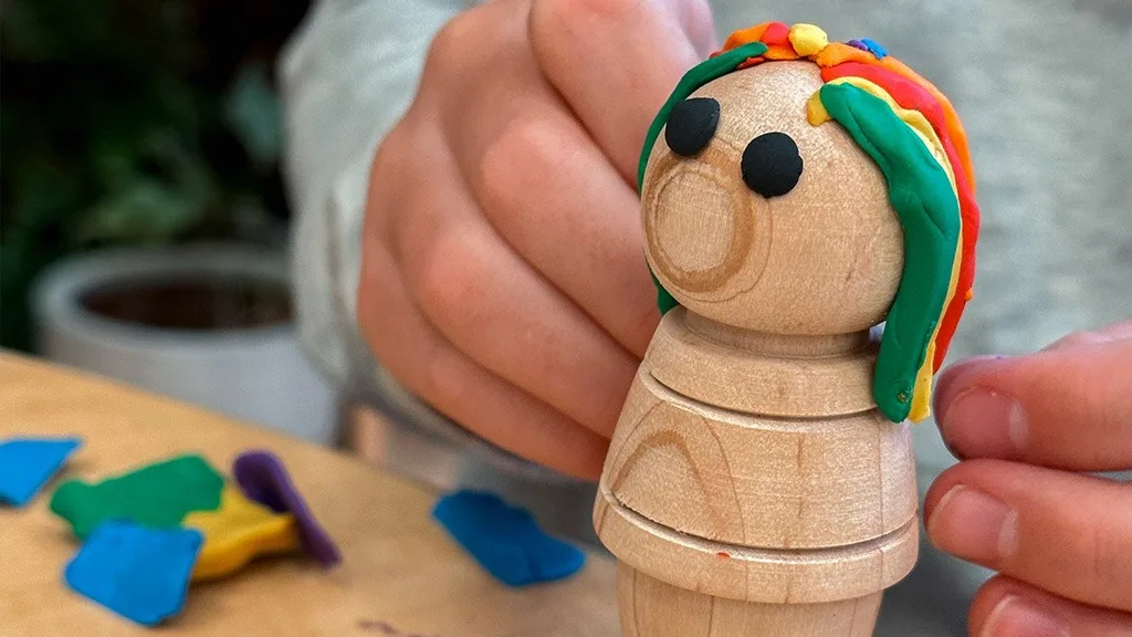 Ezek a fenntartható fafigurák két méretben (Magas és Alacsony) kaphatók, valamint világos juhar, barna dió és vegyes fa árnyalatokban. A gyerekek a mellékelt nem keményedő agyaggal díszíthetik őket, hogy frizurákat, ruhákat és még sok mást adjanak nekik. Választható csomagolt készletek vagy egyéni figurák közül.