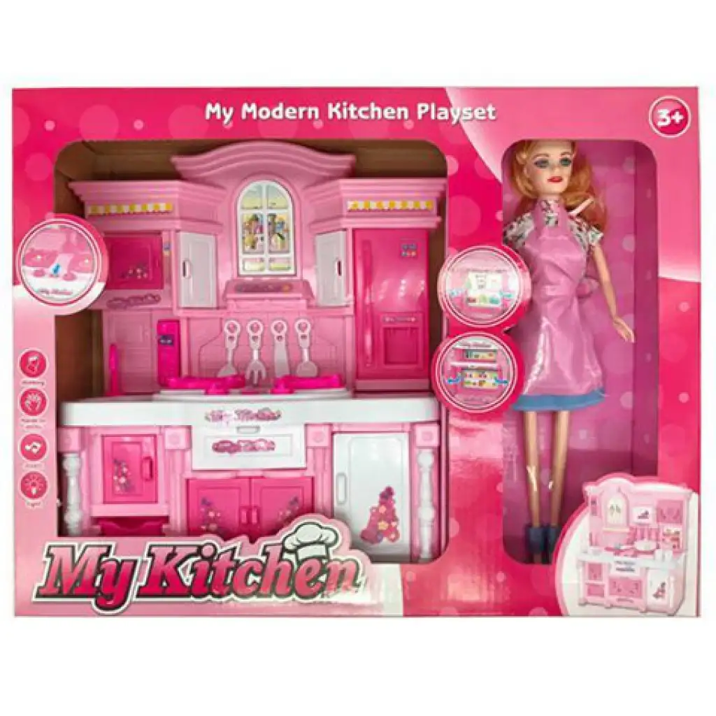A babázás az egyik legrégebbi játék a kislányok számára, azonban mára sokat változott a dolog, és a babák mellé számtalan izgalmas kiegészítő is választható, ami sokkal jobban meghatározza a játék környezetét így sokkal aprólékosabban eljátszhatók a különböző szituációk. Ebben a csomagban egy klasszikus divatbaba található, ami önmagában szuper játékélményt kínál, de a részletgazdagon kidolgozott konyhabútor a legapróbb konyhai műveletek eljátszását is lehetővé teszik, amit fények és hangok varázsolnak élethűvé. Ezzel a játékszettel a gyerekek eljátszhatják az ételek elkészítésétől a mosogatásig az összes konyhai munkát és feladatot.