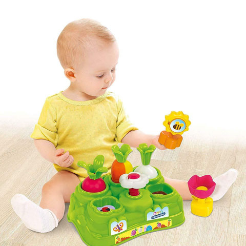 Egy különleges játékkal lepheted meg gyermekedet, mely biztosan tetszeni fog majd neki. A játék egy formaválogató játék, mely egy kertet elevenít meg, benne különböző zöldségekkel és virágokkal. Ezeket gyermeked illesztheti a helyére, ami remek torna lehet az agynak, és remek szórakozást nyújt számára, hiszen kipróbálhatja milyen a kertészkedés. A játékkal virág is érkezik valamint egy méhecske, ami elengedhetetlen része a kerteknek. Kiváló minőségének köszönhetően sokáig lehet majd használatban, kínálatunkban pedig számos más remek készség fejlesztőt is megtalálhatsz.