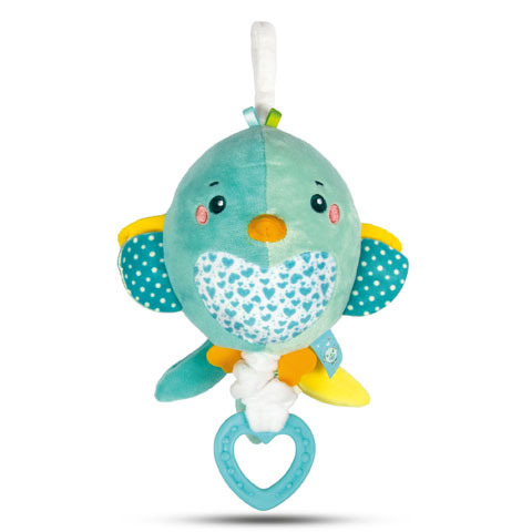 Gyermekednek keresel egy különleges zenél játékot, mely biztosan tetszeni fog majd neki? Ez az aranyos madárka tökéletes választás lehet, hiszen könnyedén magatokkal vihetitek bárhova és egyszerűen fel lehet rögzíteni. A madárka kontrasztos színt kapott, mely segít a látás javításában, valamint a hallást is javítja. Az alján lévő műanyag szívecskét meghúzva a madárka lágy dallamot kezd lejátszani, ami nyugtató hatással lesz gyermekedre, így altatáshoz, öltöztetéshez és akár fürdetéshez is tökéletes lehet majd.