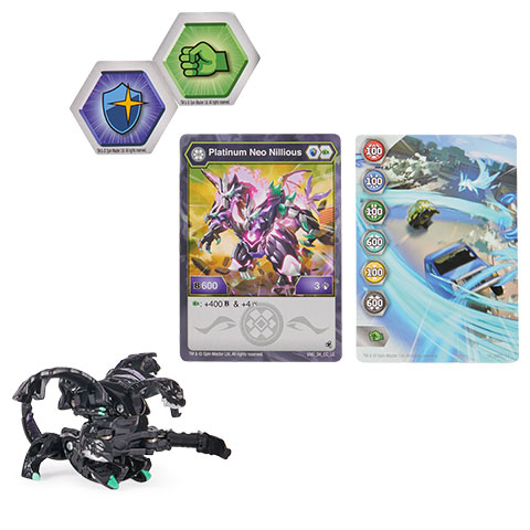 A Nillious Bakugan figura egészen biztos, hogy sok játékos számára egy régi ismerős, azonban most itt a lehetőség, hogy egy különleges fém változata kerüljön a seregbe, hiszen ebben a csomagban egy Platinum változat található, és természetesen nem hiányozhat mellőle a szükséges, kapu- és karakterkártya, ahogy a két korong sem. A játékosoknak a csata során három Bakugan figurára és karakterkártya, valamint hat darab olyan BakuCore korongra lesz szükség, aminek a szimbólumai megegyeznek a karakterek BakuCore szimbolumával. Amint összeállt a korongokból alkotott tárgy, minden játékos gurít, és ha egynél több Bakugan nyílt ki, akkor kezdetét veszi a harc, ahol a képességkártyák jelenthetnek izgalmas fordulatokat. A csatát az nyeri, akinek a Bakuganja erősebb, és a játék megnyeréséhez három győztes harc szükséges.