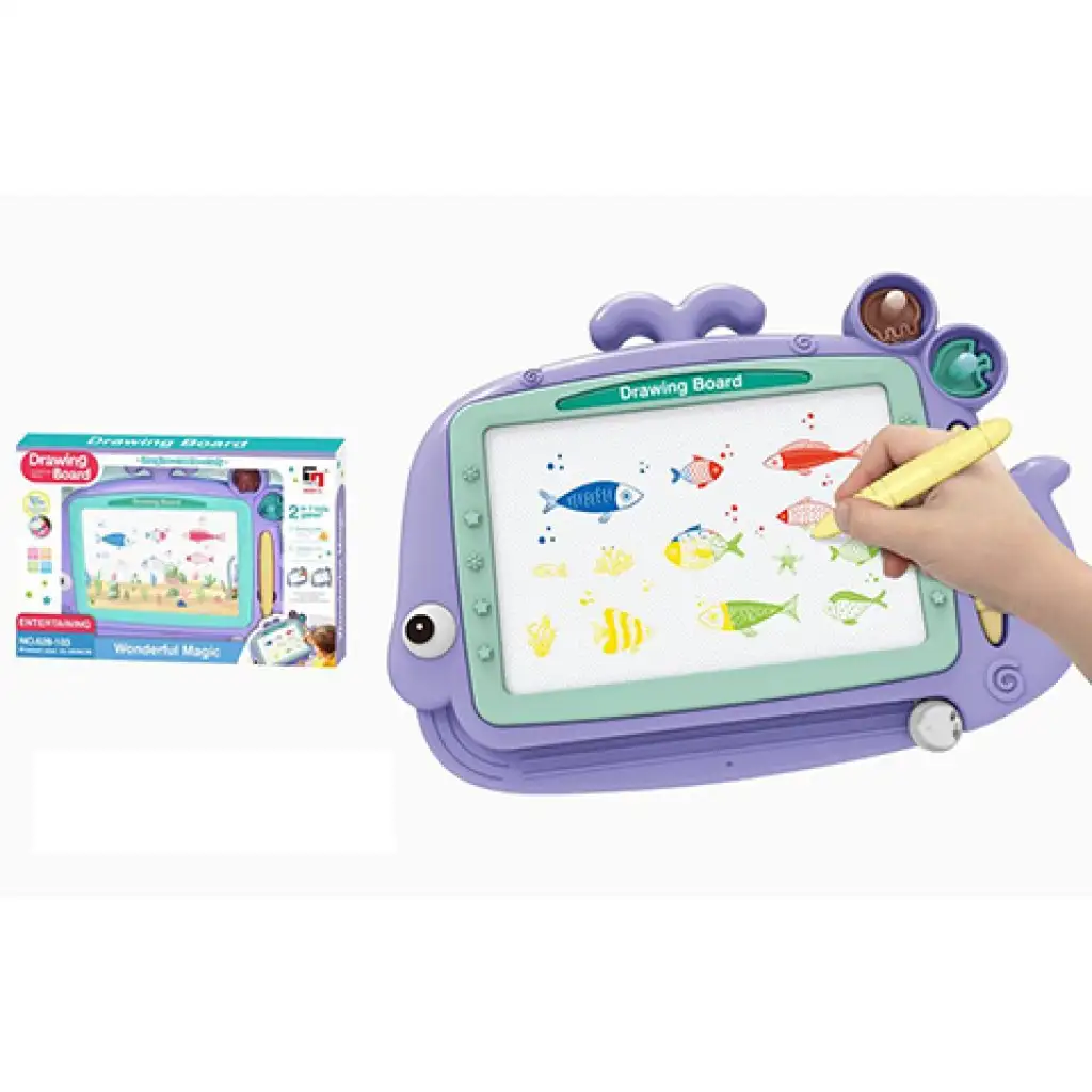 Bálna formájú lila mágneses rajztábla nyomdákkal