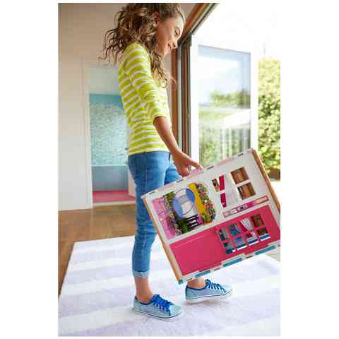 Ez a hatalmas és rendkívül látványos Barbie 2 történet babaház számos meglepetést tartogat a számodra. A ház helyiségei között megtalálod a fürdőszobát, a konyhát, a nappalit és a felső hálószobát. Itt azonban még nem ért véget a szobák listája, ugyanis egy kis átalakítással máris étkezőt varázsolhatsz a nappaliból és fürdőt a hálóból. Hajtsd le a tévét és máris egy praktikus étkezőasztalt kapsz. Hajtsd ki az ágyat az emeleten és máris kész a kád. A konyhában számos kiegészítőt találsz a főzéshez és a toalett fölött még egy zuhanyzófej is helyet kapott. A ház könnyedén összecsukható, hogy aztán bőröndként bárhová magaddal vihesd. A szett még egy Barbie babát is tartalmaz, hogy a készlet kibontása után azonnal kezdődhessen a játék.