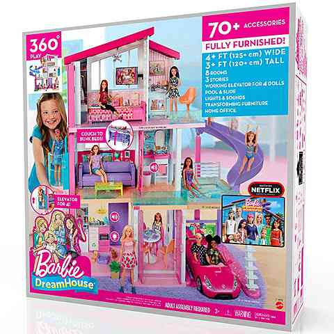Remek játékélmény vár Barbie-nál, hiszen most az Álomházában vendégeskedhetsz! A nyolc helységgel rendelkező, három emeletes házban lifttel közlekedhetsz a szintek között. lefelé pedig használhatod akár a csúszdát is, ami egyenesen a medencébe vezet. A rengeteg kiegészítő játékelem mind lehetőséget adnak egy újabb jelenet megelevenítésére, így a már meglévő Barbie babáidat mind használhatod ebben a szuper házban. A teljesen berendezett, bútorokkal teli Álomházban csodás játékélmény vár Barbie babáid társaságában!