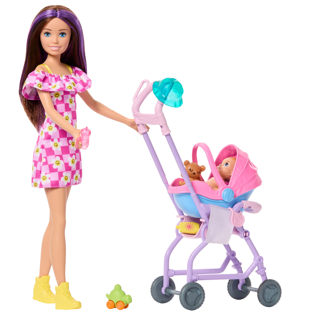 A Barbie baba virágos ruhában – BébIszitter játékszett remek választás, ha gyermeked szeret gondoskodó, mindennapi élethelyzeteket eljátszani. Skipper, a bébiszitter baba most egy vidám sétára indul a kisbabával, így a játék során a gondoskodás és a felelősségvállalás is természetesen megjelenik. A csinos, virágmintás ruhába öltöztetett Skipper kényelmes sportcipőt visel, így készen áll egy egész napos munkára és játékra. A szett része egy babakocsi kivehető hordozóval, ami 2 az 1-ben játékélményt nyújt, valamint számos apró kiegészítő, mint játékok, sapka, naptej és itatópohár. Ezek segítenek valósághű történeteket kitalálni, miközben fejlesztik a gyermek empátiáját és fantáziáját. Ideális ajándék 3 éves kortól, akár önállóan, akár más Barbie készletekkel együtt játszva.