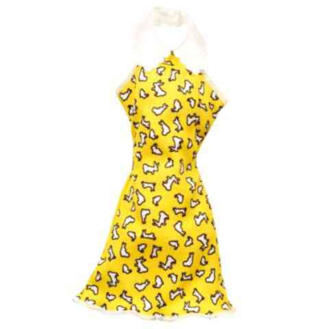 Ha egy igazán látványos ruhát szeretnél a Barbie babádnak, akkor már nem is kell tovább keresgélned! Ez a sárga, egybe részes ruha tetőtől-talpig fehér nyuszikkal van borítva, ami igazán különlegessé teszi. A ruha nyakán még egy magas, fehér gallér is van, hogy elegáns alkalmakkor is hordhassa a babád.