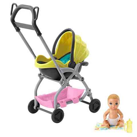 Barbie: Bébiszitter sárga babakocsi szett - Mattel