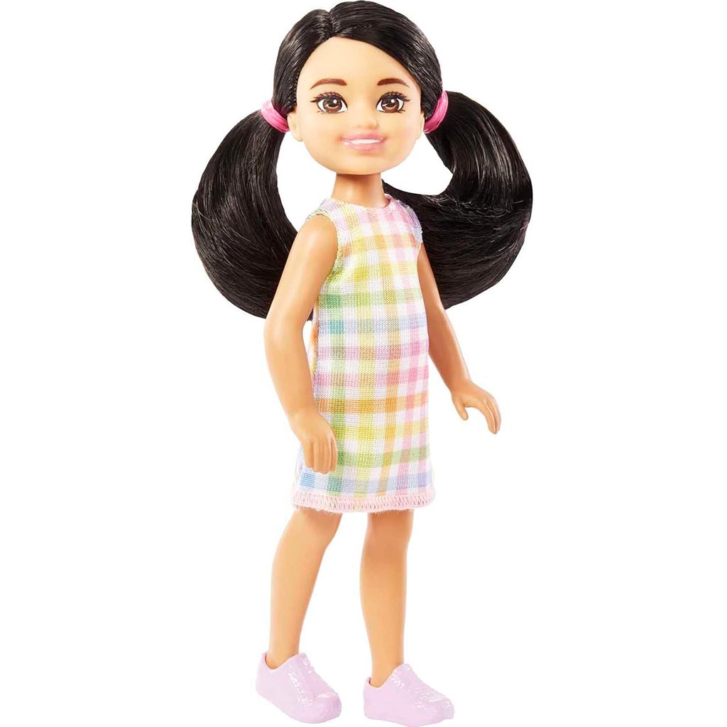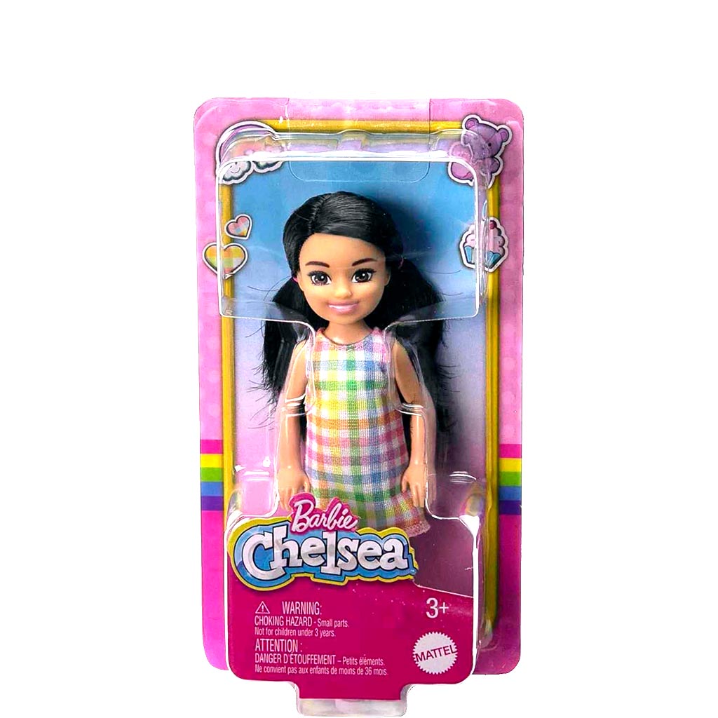 Fedezd fel a Barbie világának legfiatalabb és legbájosabb tagját, Chelsea-t, aki mindig készen áll a mókára! Ez a Chelsea baba cuki, fekete, copfos hajával és színes ruhájával igazán stílusos megjelenést kölcsönöz minden játéknak. Chelsea vidám, kockás mintás ruhát visel, amely a pasztell színek finom kombinációjával tökéletes választás bármilyen alkalomra. A baba rózsaszín sportcipője kényelmet és divatot egyesít, így Chelsea mindig készen áll a játékra, legyen szó otthoni kalandokról vagy kirándulásról a szabadban. Ez a kis baba tökéletes társ a kislányok számára, hogy saját történeteket találjanak ki, és fejlesszék kreativitásukat és képzeletüket Chelsea segítségével.