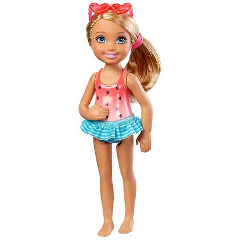 Chelsea már nagyon várta, hogy végre nyár legyen és beköszöntsön a jó idő, hiszen imád strandolni, így most nagyon boldog, hogy végre felvehette az új strandolós felszerelését, aminek a felső része, olyan mintha csak egy dinnye lenne sok-sok apró fekete maggal. A verőfényes napsütés ellen egy szív alakú napszemüveggel is készült. A Chelsea babák a jól ismert Barbie babák alapján jöttek létre, de gyerekeket ábrázolnak, így érthető módon alacsonyabbak a hagyományos Barbie babáknál, azonban a jól megszokott minőséget képviselik mind a babák, mind a ruházatuk tekintetében.