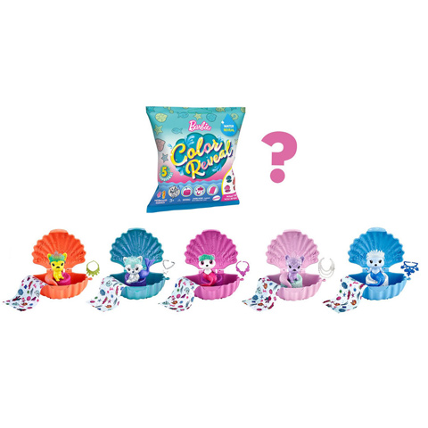 A Barbie Color Reveal sellő babás szettjéhez egy különleges kiegészítőt hoztunk el, ami elnyeri majd gyermeked tetszését. A szettben ugyanis egy kagyló található, ám hogy az milyen színű és ki lakozik benne az meglepetés. A kagylók csodaszép megjelenést kaptak, melyhez egy-egy különleges élőlény is tartozik, akik ebben a kagylóban élnek, és különböző kiegészítők is tartoznak hozzájuk, melyekkel még jobb lehet majd a játék élménye. Szerezd be és keresd a Barbie-kat is.