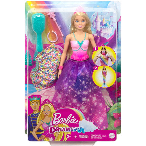 A Dreamtopia Barbie mesefilm egy csodálatos utazásra invitálja a gyerekeket a mesevilág minden területén, és mint ilyen, természetesen a víz alatti királyságok sem maradhatnak ki, ahol a varázslatos sellők élnek. Ebben a csomagban egy igazán különleges Barbie baba található, hiszen épp úgy lehet vele játszani hercegnőként, ahogy egy kis ügyeskedéssel sellővé lehet varázsolni, hogy színpompás uszonyával máris a vízmélyi királyság hercegnője legyen belőle. A harminc centiméteres Barbie baba egészen biztos, hogy hatalmas sikert fog aratni a kislányok körében.