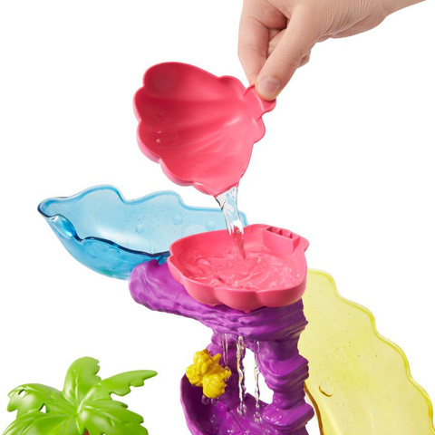 A Barbie Dreamtopia egy varázslatos világba enged betekintést. Ha gyermeked is rajong érte, ez a szett remek választás lesz részére, hiszen egy vízicsúszdás játékszett lehet az övé, ahol Chelseavel együtt játszhatnak. A szett élénk színei tökéletesen idézik a Dreamtopia hangulatot, a háromszintes vízi park pedig rengeteg lehetőséget nyújt a játékhoz. Tetején egy kagylóba lehet vizet tölteni, mely lefolyik, alul pedig egy kis medence található, amibe Chelsea érkezhet. Ezen kívül egy pálmafa, rajta egy kagylós hintával, valamint két kiskedvenc is a szett része, így biztos lesz a siker. Szerezd be gyermekednek és kezdődhet is a játék.