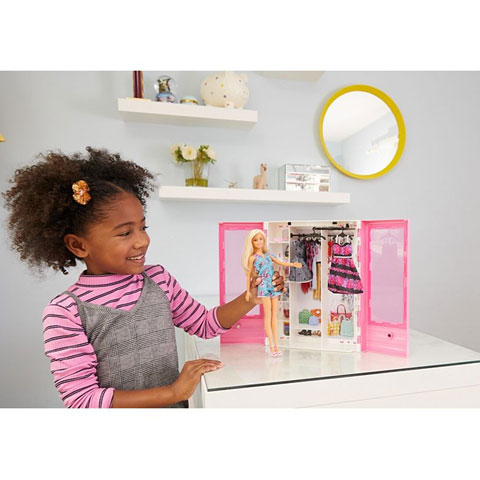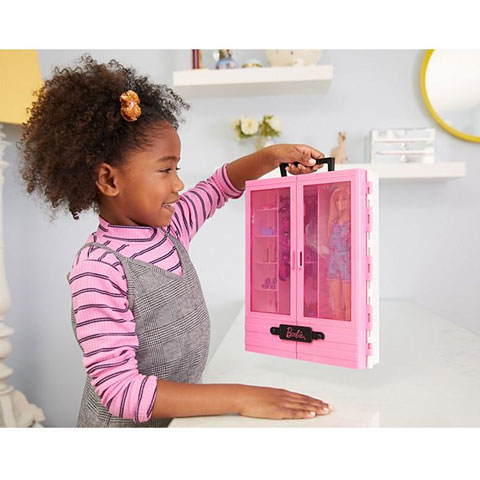 Egy különleges szettet szerezhetsz be gyermeked számára, aminek biztosan nagyon örülni fog majd, hiszen egy egész szekrény ruhát és egy Barbie babát tartalmaz. A szekrény a tetején lévő fogónál fogva hordozható, valamint belül fogasok és vállfák, valamint ruhák, cipők és ékszerek találhatóak, melyekkel csodaszép szetteket lehet ráadni Barbie-ra. A szekrény könnyen kinyitható, és segíthet gyermekednek rendszerezni a dolgokat, ráadásul a már meglévő ruhákat is felakaszthatja a szekrényben, hiszen rengeteg hely van benne.