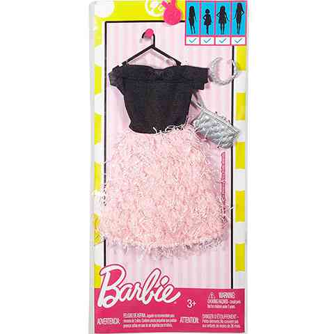 Bővítsd ki kedvenc Barbie babád ruhakollekcióját ezzel a csodálatos fodros szoknyás ruhával! A ruhát bármely babára ráadhatod, hiszen mindegyik típussal kompatibilis. A fekete, rövidújjú felső részen plüss hatású, rózsaszín fodrozott szoknya található amely egészen Barbie lábáig ér. A csomag részeként ékszerekkel is díszítheted kedvenc babád az ezüst színű nyaklánccal és a gyönyörű retiküllel. Egészítsd ki Barbie ruhatárát és diktáld te a legújabb divatot.