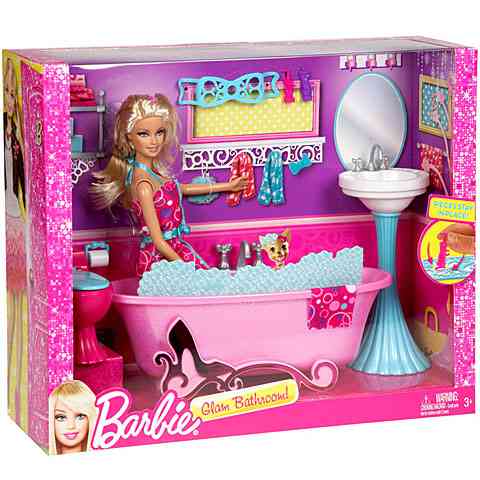 Egy kellemes fürdőt készíthetsz Barbie-nak, melyet a saját stílusában berendezett fürdőszobában tehetsz teljessé. A készletben a Barbie-hoz tartozó fürdőkádat, csapot valamint a wc-t találod meg, melyek elmaradhatatlan kellékei egy igazi fürdőszobának. Az elrendezés már rajtad múlik, a rózsaszín bútorok biztosan remekül illenek a Barbie házadba.