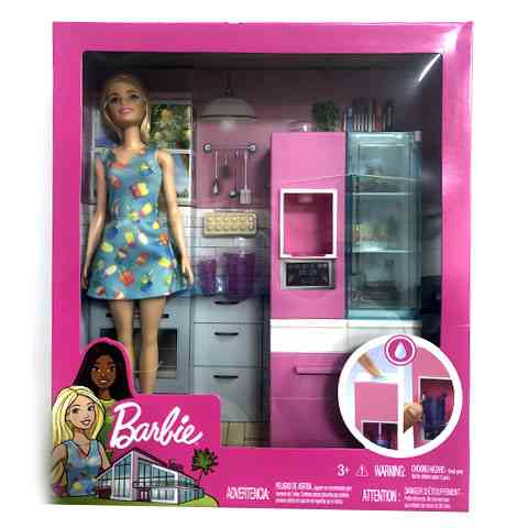 Barbie nem csak a divat világában érzi otthon magát, hanem a konyhában is nagyon tehetséges, és a legfinomabb ételeket és süteményeket tudja elkészíteni. Ebben a csomagban a kislányok nem csak egy Barbie babát találnak, hanem egy nagyon jól felszerelt konyha részletet is, így nagyon jó játékélményt kínál a kislányoknak. A konyhában természetesen egy rózsaszín bútor került, ami tartalmaz egy sütőt, főzőlapot, mosogatót, egy elszívót és egy mikrohullámú sütőt. persze a nagyobb konyhai felszerelések mellett egy csomó kiegészítő apróság teszi még teljesebbé a játékélményt.