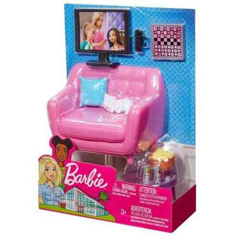 Egy különleges szettet szerezhetsz be gyermeked számára, ami tökéletes kiegészítője lehet a már meglévő Barbie babájának, hiszen saját nappalija lehet általa. Ebben a szettben ugyanis minden megtalálható, ami egy nappaliba kellhet. A TV állvány, melyen Barbie kedvenc sorozata megy éppen, valamint egy csodaszép rózsaszín kanapé, mihez egy párna is tartozik. Ezen kívül egy kis asztal, rajta pop-cornnal és üdítővel, valamint egy cica és egy játék is megtalálható benne, így bátran áthívhatja barátait, hogy együtt töltsék szabadidejüket.