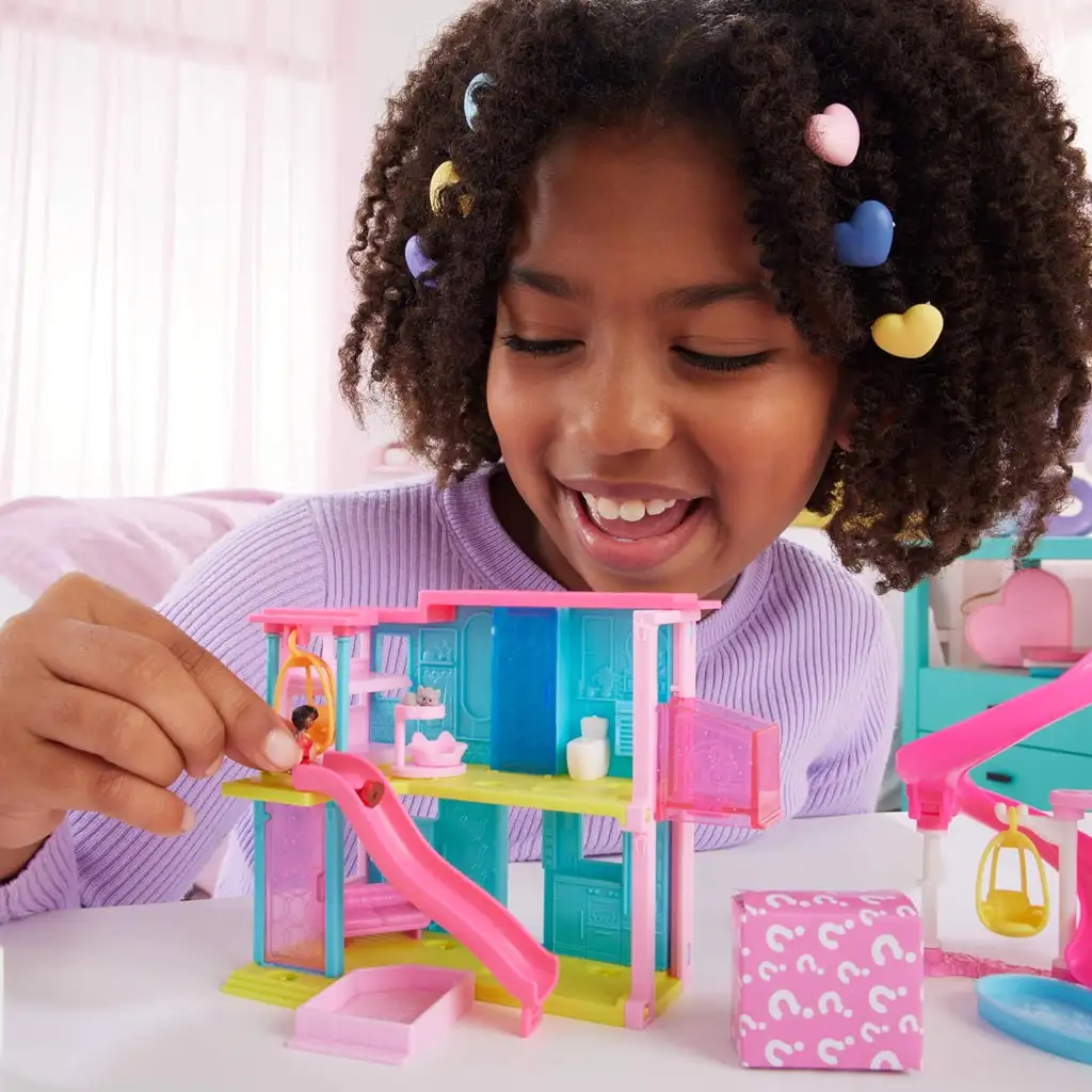 A Barbieland mini háza tökéletes méretű az apró kezek számára. Az álomvilla kinyitott mérete kb. 13 x 13,97 cm, könnyen felállítható bárhol. De a méret ne tévesszen meg senkit! A kis ház rengeteg Barbie-élményt tartogat, és ugyanúgy fejleszti a történetmesélési készségeket, az önmegvalósítási törekvéseket, és egészséges önbizalmat ad, mint a nagy testvére, a külön kapható nagy Álomház. Sőt! Még egy kis extrát is ad a szerepjátékokhoz, hiszen a benne található mini Barbie figura, annak kiskedvence és kiegészítője is meglepetésként várja őket. Ennek köszönhetően azonnal mosolyt csalhat bármelyik rajongó arcára, és mindenkinek örömet okozhat, aki szereti a babaházakat és imádja Barbie-t.