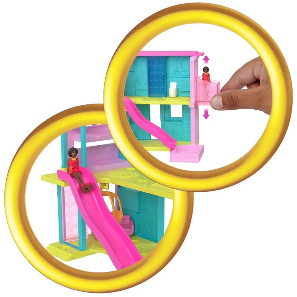 De itt még nincs vége a boldogságnak és a felfedezésre váró részleteknek. A mini ház két emeleten számtalan játéktérrel büszkélkedik, beleértve a működő liftet, csúszdát és medencét, hogy valódi legyen a mini baba és külön kapható barátai közös lazítós, beszélgetős időtöltése.