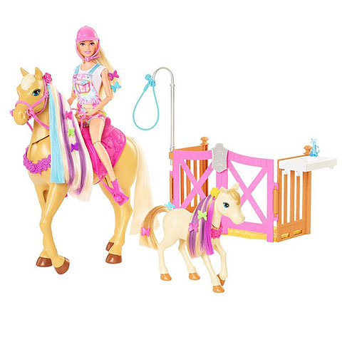 Ennél jobb ajándékot keresve sem találnánk a kislányok számára, hiszen a csajok két kedvence is megtalálható a csomagban. Az egyik egy Barbie baba, ami már önmagában is népszerű a kislányok körében, a másik pedig egy ló és egy csikó, ami szintén a kislányok kedvencének számít, és így nagyszerű lovas kalandokat lehet majd eljátszani. A Barbie játékszettek mindegyike egy rendkívül divatosan öltözött babát rejt magában, és természetesen semmi akadálya nincs, hogy a babák egymásközt szabadon variálják öltözetüket, így még divatosabb, és egyedibb megjelenést biztosít számukra.