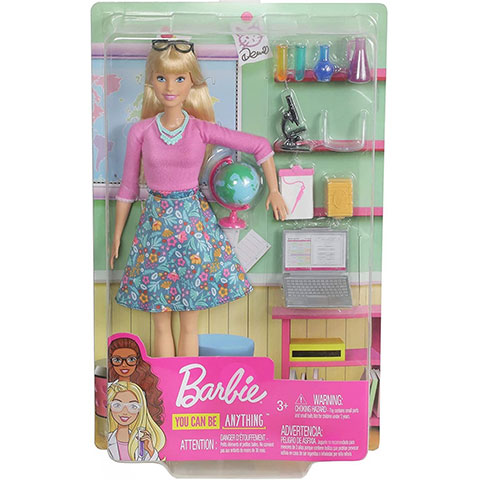 Barbiet nagyon sokféle munkakörben el lehet képzelni, de alighanem a tanár szerep állna neki a legjobban. Ahogy erről a babáról is sugárzik a tudományok és a divat iránti szeretet, hiszen a mai tanórákhoz egy rózsaszín felsőt és egy elegáns mintás szoknyát vett fel, amihez Barbie egy tökéletes nyakéket választott, így még a tanteremben is divatos és csinos megjelenéssel hívja fel magára a figyelmet. A babához olyan, a munkakörhöz szükséges kiegészítők is járnak, mint a laptop, a földgömb , kéncsövek és mikroszkóp.