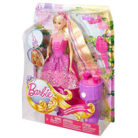 Minden hercegnő szépséges tündöklése elhalványul egy kicsit, amikor Barbie hercegnő mellet állnak. Barbie szőke haja úgy ragyog akár a nap, és rózsaszín ruhájához hasonlót hetedhét országban sem látni. A Barbie hercegnő babával igazán jókat lehet játszani, hiszen a babának körülbelül kilenc centiméteres haja van, így szabadon meg lehet alkotni belőle a legkülönfélébb hajkölteményeket. Fésüld ki szép egyenesre, tegyél bele csattokat és masnikat, vagy ha elég ügyes vagy hozzá, akkor készíts szép fonatokat, amelyeket a színes tincsek használatával különösen fel lehet dobni. használd a készletben található gépet, aminek a segítségével egy szempillantás alatt meg tudod csavarni a hajtincseket.