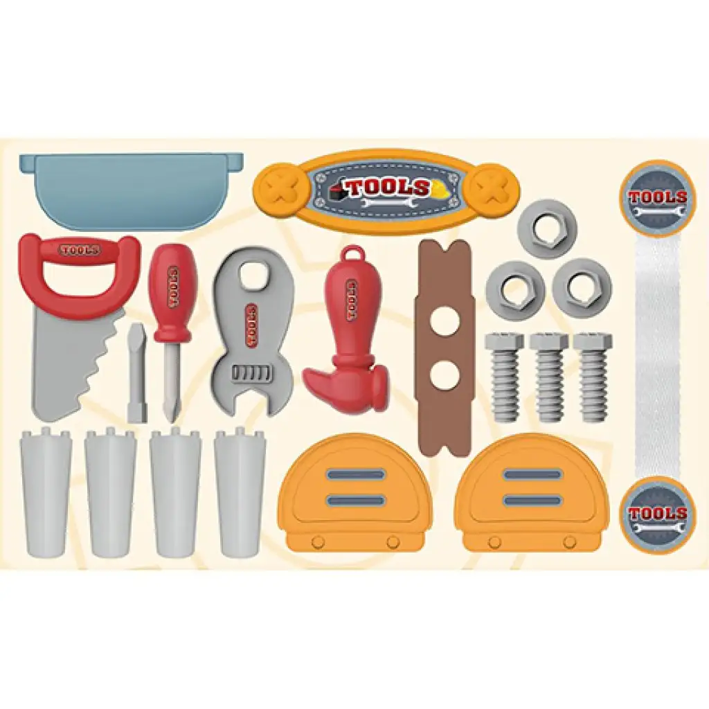 Egy igazi barkácsmester szerszám arzenáljából nem hiányozhat egy hordozható szerszámkészlet, amelyet a bőrönd alakú tároló fogantyújának segítségével bárhová magával viheti gyermeked és egy szempillantás alatt előkaphatja az éppen szükséges szerszámot, amellyel megjavíthatja az elromlott dolgokat. A szettben összesen 25db alkotóelem található és akár egy utazás során is könnyedén magával viheti gyermeked.