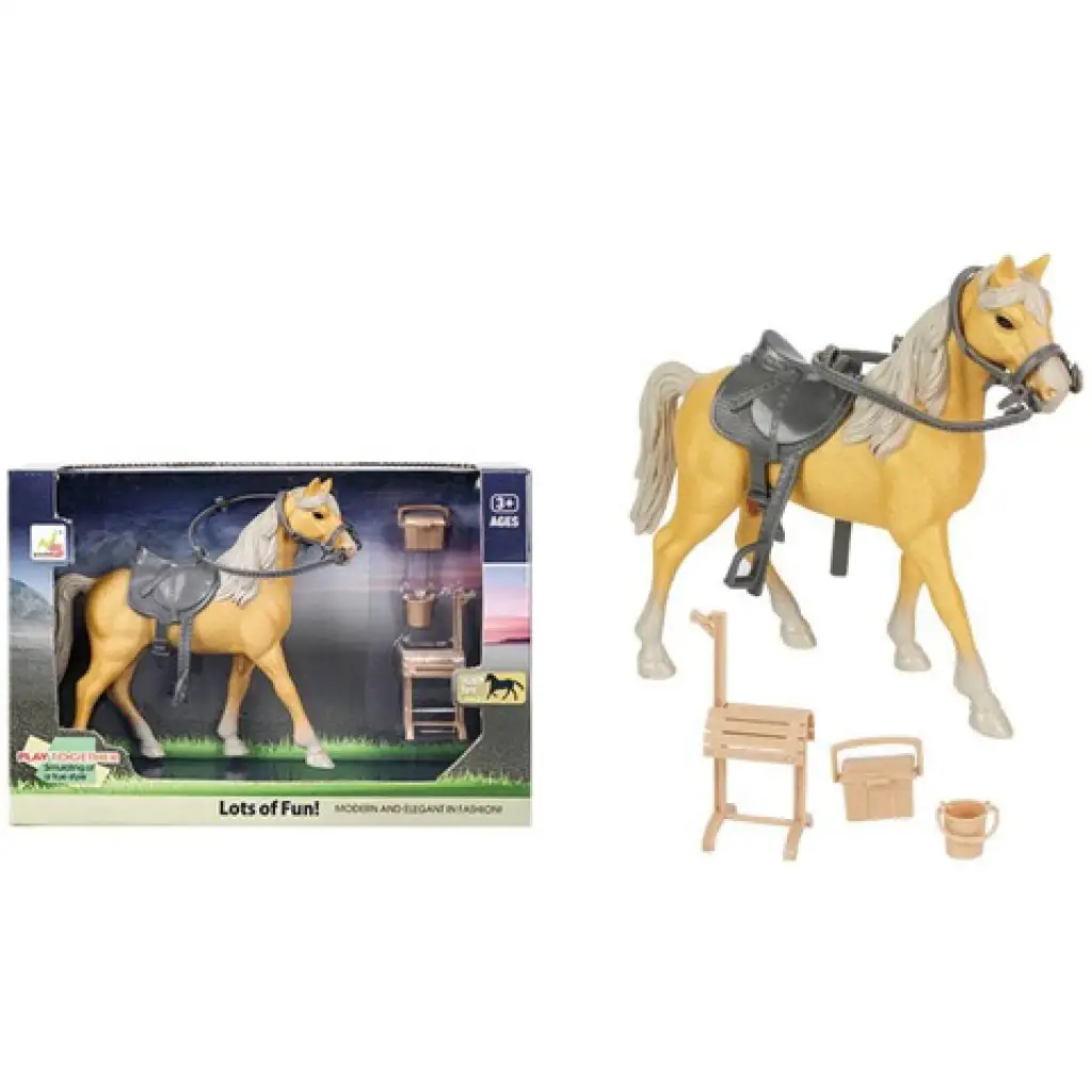 Gyermeked szereti a lovakat és a lovaglást? Lepd meg őt egy saját lóval, akit bárhova magával vihet majd. A szettben egy lófigura található, aki világosbarna színt kapott, csodaszép sörénnyel és farokkal. A lóhoz egy szürke nyereg és kantár is tartozik, melyek levehetőek, így kislányod maga készítheti majd elő a lovat a lovagláshoz. Ezeken kívül még egy nyeregtartó állvány és egy vödör is megtalálható benne, melyek a játék élményét még jobbá teszik majd. Részletes kialakítást kapott, aminek köszönhetően nagyon élethű, strapabíró anyagának köszönhetően pedig sokáig használatban lehet majd.