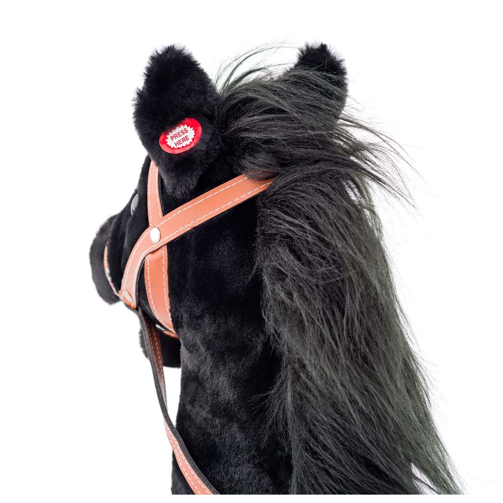 A Baron a vesszőparipa hobby ló hanggal tökéletes választás minden kis lovas számára, aki saját ménesről és izgalmas vágtákról álmodik. A részletgazdag kidolgozású, puha plüss lófej valósághű megjelenést biztosít: fekete szőre, selymes tapintású sörénye és barna kantárja igazán élethűvé teszik. Baron nemcsak egy játék, hanem hű társ a fantáziadús kalandokban – legyen szó versenyről, akadálypályáról vagy egy képzeletbeli kirándulásról.