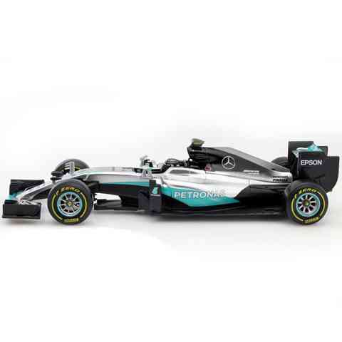 A Forma1 versenysorozat néhány éve vezette a hybrid erőforrásokat, így a kocsikba elektromos támogatású turbó motorok kerültek, amelyek a folyamatos fejlesztésekkel 2016-ra már javában 950 lóerő felett mozogtak. A Mercedes az új korszak kimagasló nyertese lett, és a 2016-os autójukkal is dominálták a versenysorozatot. Nico Rosberg kiélezett versenyben végül megnyerte a bajnokságot. A Bburago rendkívül részletgazdagon kidolgozott 1/18-as modelljei tökéletes másai a valódi kocsiknak, . Az autóknak még a kereke is kormányozható.