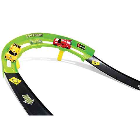 Száguldj a kisautókkal át a hurkon, a döntött meredek kanyaron, majd ugrass a célba! A hátrahúzhatós autót a hosszú egyenesben indíthatod útnak, majd a kanyar után jöhet is a hurok akadálya, amit az ugrató követ! A gyerekek izgalmas versenypályán száguldhatnak el a célig, amihez a készlet 1db Bburago kisautót tartalmaz. Ugrass minél messzebbre!