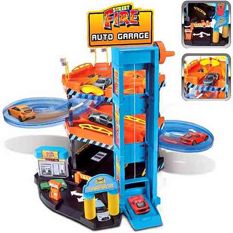 Építsd fel kisautóidnak a szuper garázst, melyben több emeleten is leparkolhatsz a kocsikkal és különböző szolgáltatásokat is igénybe vehetsz. Emeld a lifttel a megfelelő parkolóhelyhez a járgányokat, majd lefelé a spirál pályán ugorj be egy autómosásra is! A tankot is feltöltheted a benzinkúton, így felkészülve indulhatsz a forgalomba. A játékhoz használd már meglévő kisautóidat is!
