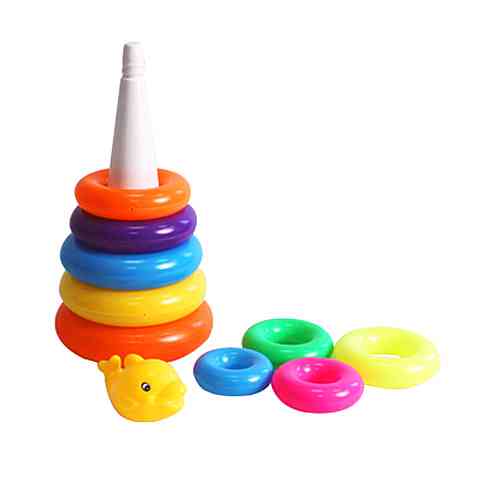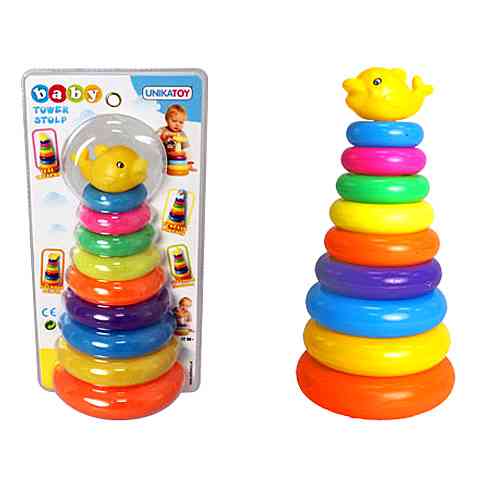 A legkisebb gyerekek fejlesztésére kiválóan alkalmas a gyűrűpiramis játék, hiszen nem csak a színfelismerésüket és kézügyességüket javítja, hanem megtanítja nekik a kicsi és nagy méret közötti különbséget is. A színes gyűrűket úgy kell a játékalapra helyezniük a gyerekeknek, hogy azok egyre kisebb méretűek legyenek, majd a végén a delfint kell a torony játékra helyezni.